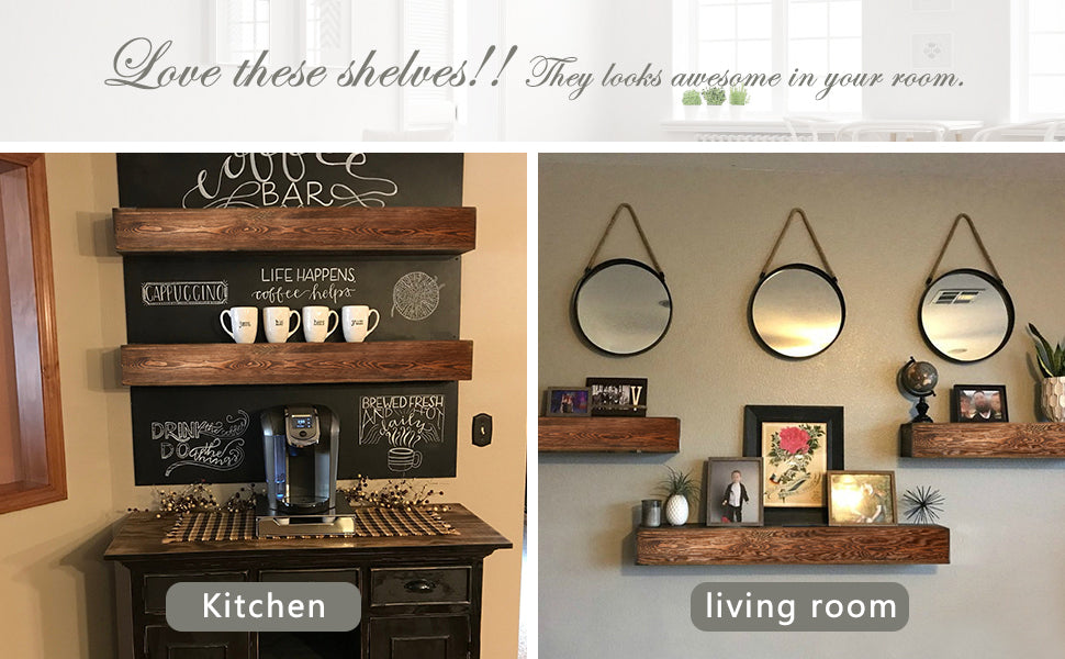- AUTHENTIC ROUGH CUT LUMBER - Our premium floating shelves offer real saw marks complemented by our walnut house stain and poly finish. Due to the character of wood, sometimes knots and natural imperfections are present. We do our best to use the best looking wood, but at times some slight imperfections will show. We feel these imperfections add to the character and beauty of the wood