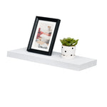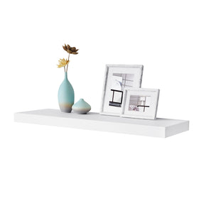 Simons floating shelf refers to the 1.25" thick floating shelf. With its sleek straight lines and its hidden bracket hanging system, this shelf adds character and elegance to your home. It is ideal for displaying decorative home accessories, books, vases, photo frames and so much more. You can hang several shelves to create a better effect. The unique mounting system makes this shelf easy to install and highly functional. Instruction is included in the package to help you install the shelf quickly and efficiently. Made of durable Medium Density Fiberboard.