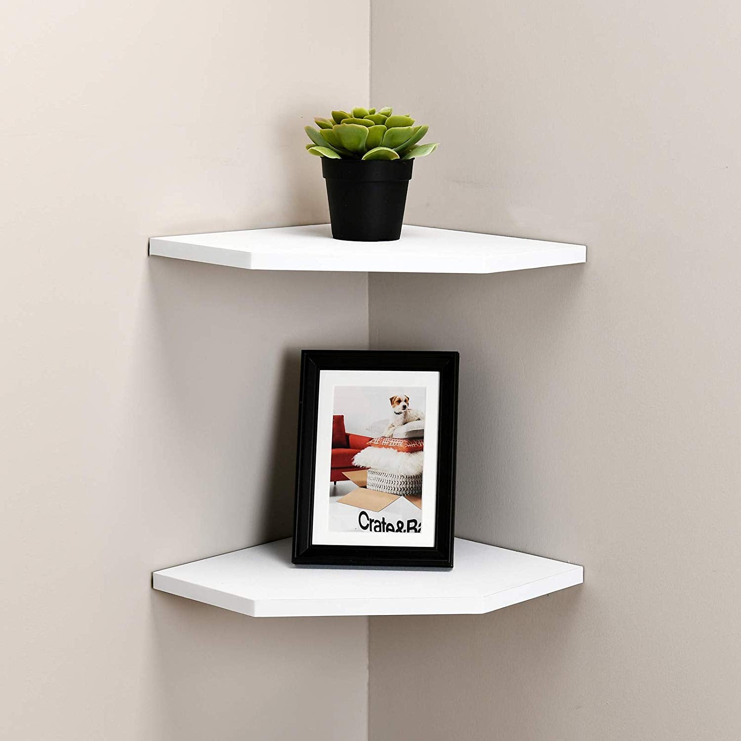 This corner shelf accompanies 2 packs and made from MDF. With its space-sparing structure and one of a kind embellishment, this corner shelf is ideal for showing everything from confined family photographs to plant pot and significantly more without the requirement for chunky furniture. This wall mounted storage unit fits effectively into a corner and connects to the two sides of the wall for a particular and engaging expansion to any home décor.