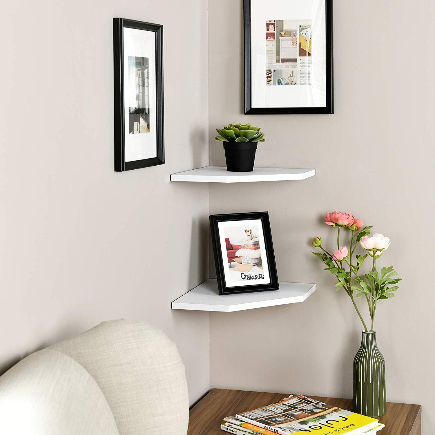 | Zig zag corner shelf | corner picture ledge | large corner shelf | L-Shape corner shelves | |