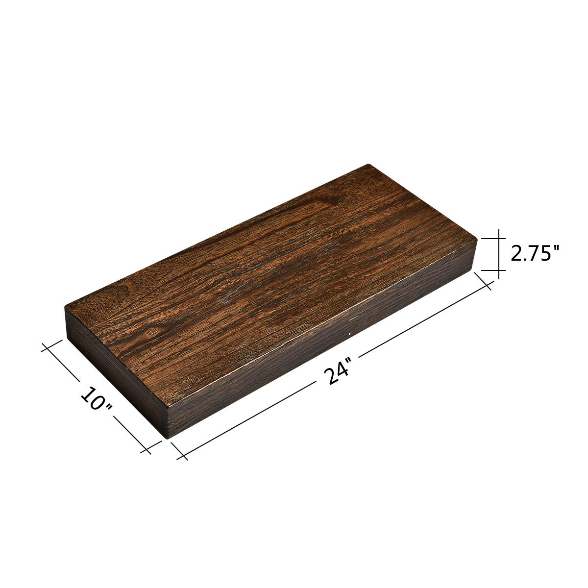 Our premium Floating shelves offer real saw marks complemented by our walnut house stain and poly finish, Due to the character of wood, sometimes knots and natural imperfections are present. We do our best to use the best-looking wood, but at times some slight imperfections will show. We feel these imperfections add to the character and beauty of the wood.
